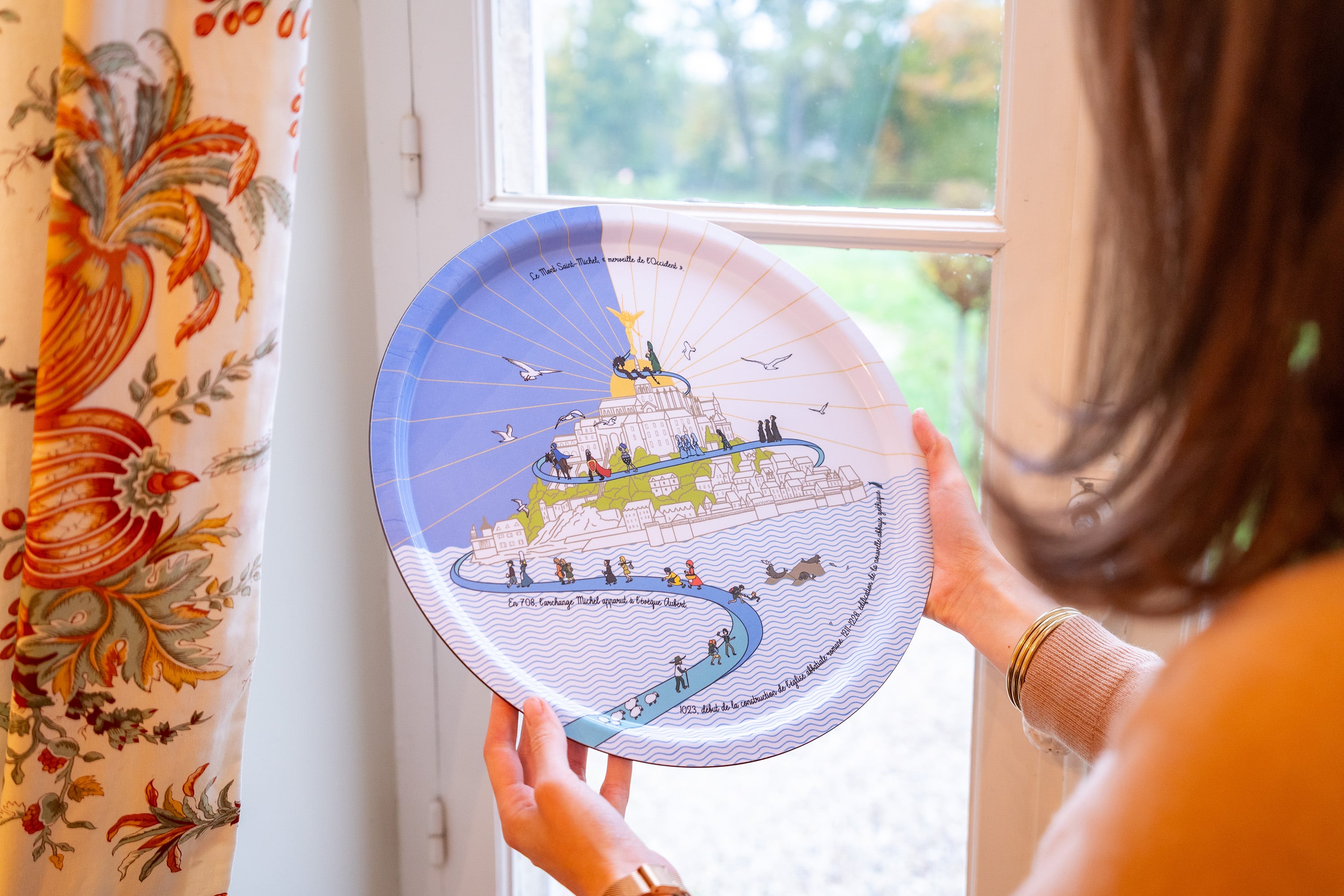 Plongez dans l'histoire de la « Merveille de l'Occident » ! Ce plateau, créé en collaboration avec l'Établissement Public du Mont-Saint-Michel, retrace les légendes, des chevaliers aux pèlerins, sans oublier l'Archange. Offrez-vous une pièce exclusive et authentique qui transforme chaque service en un voyage fascinant à travers les siècles.